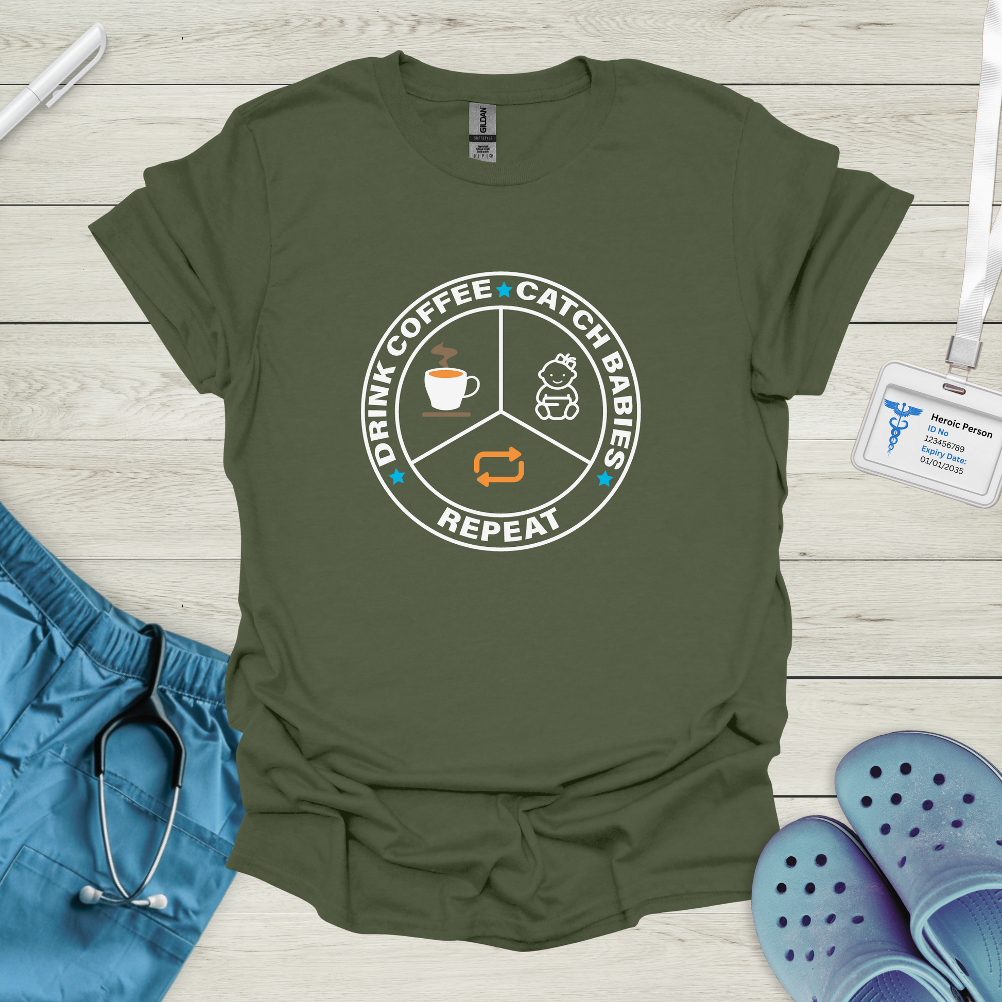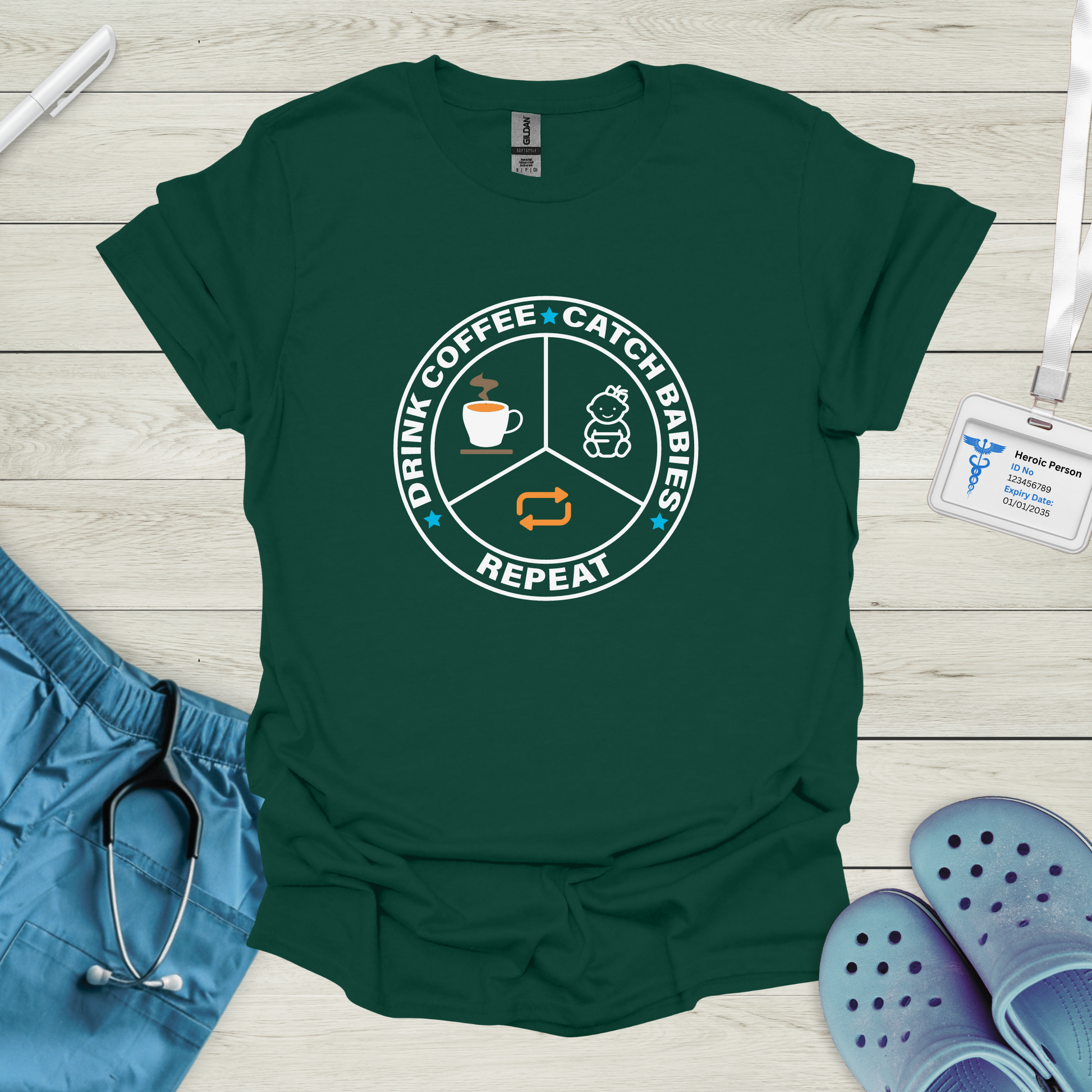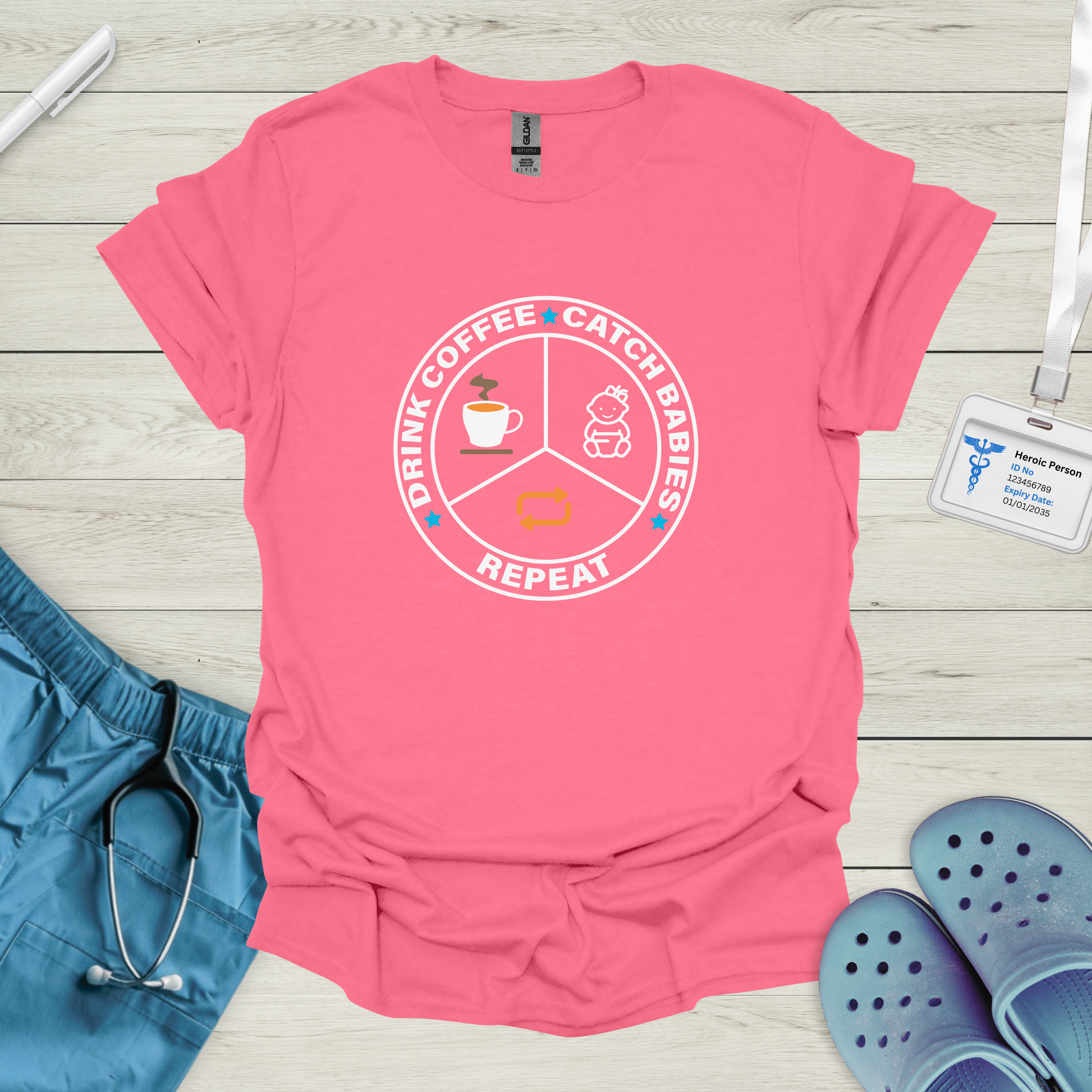 Drink Coffee, Catch Babies, Repeat T-Shirt